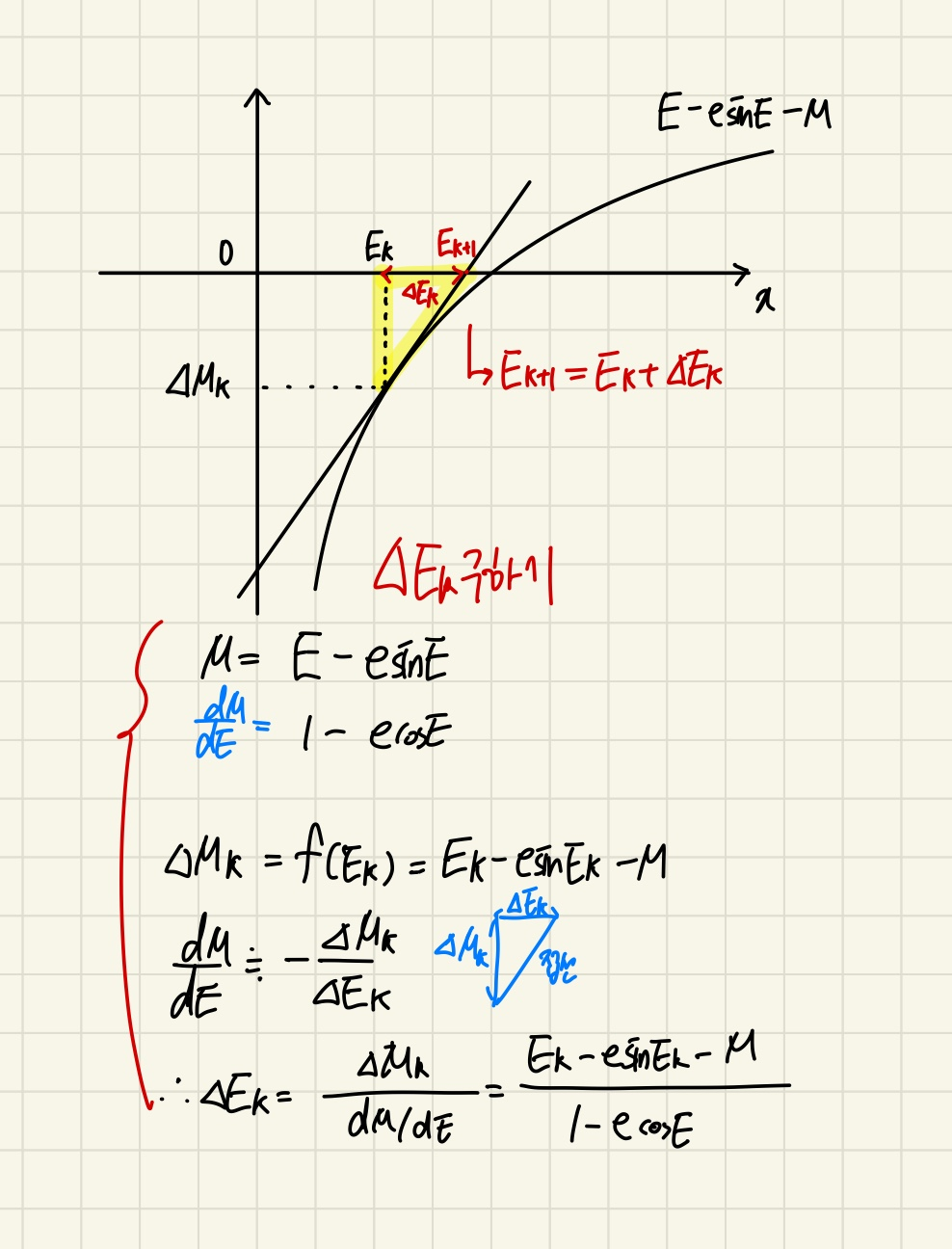 처음에 이 과정이 조금 이해가 어려웠는데 현재 예제에 나온 E- esinE -M식으로 설명해보겠다.