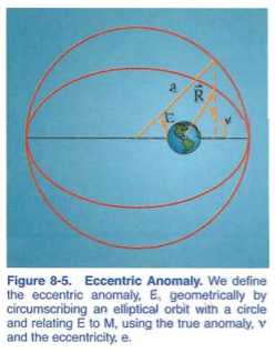 궤도역학에서 세 가지 Anomaly가 있는데, 시간을 계산하기 위해 나온 개념이 Mean Anomlay, 실제 타원 궤도에서 움직이는 물체의 각도 True anomaly, 그리고 이 두 개념을 이어주는 Eccentric Anomaly, Mean - True를 바로 연결할 수 없어서 나온 보조적인 개념이다.