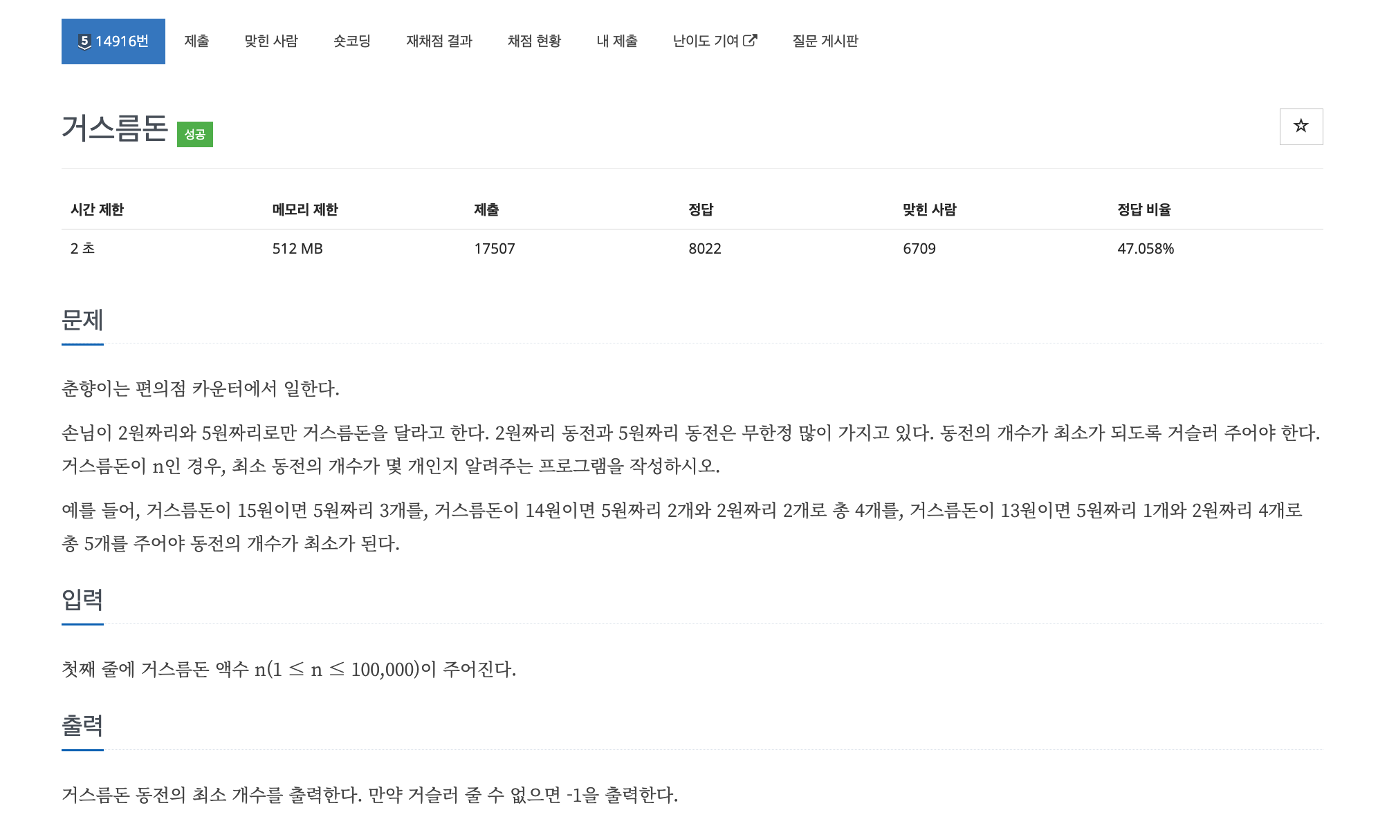 1. 문제 1834번: 나머지와 몫이 같은 수 N으로 나누었을 때 나머지와 몫이 같은 모든 자연수의 합을 구하는 프로그램을 작성하시오. 예를 들어 N=3일 때, 나머지와 몫이 모두 같은 자연수는 4와 8 두 개가 있으므로, 그 합은 12이다. www.acmicpc.net 2. 코드 using System; class BJ1834 { static void Main() { long n = long.Parse(Console.ReadLine()); long sum = ((n * n * n) - n) / 2; Console.WriteLine(sum); } } 3. 풀이 간단한 수학 문제이다. 그러나 여기서 가장 중요한 것은 바로 형(type) 처음 int로 입력을 받고 입력값을 2,000,000으로 입력했을 때 ..