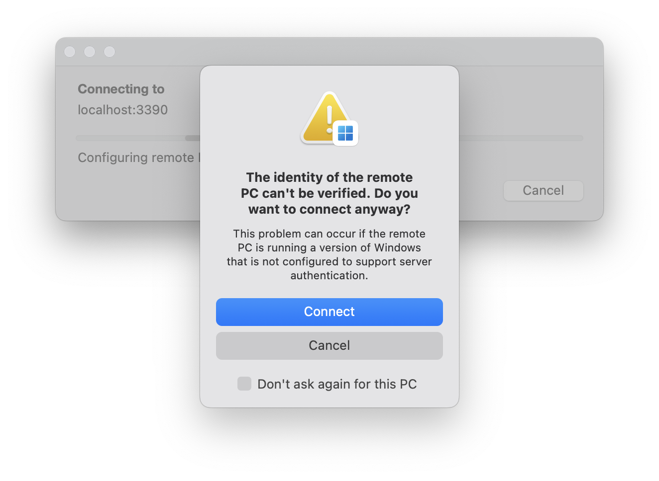 맥의 Windows App에서 localhost:3390 (사용자가 정한 포트 번호)로 접속을 시도하면 이 신호가 2단계에서 만든 터널을 타고 내부망에 있는 Windows PC로 쏙 들어가는 원리를 사용한다.